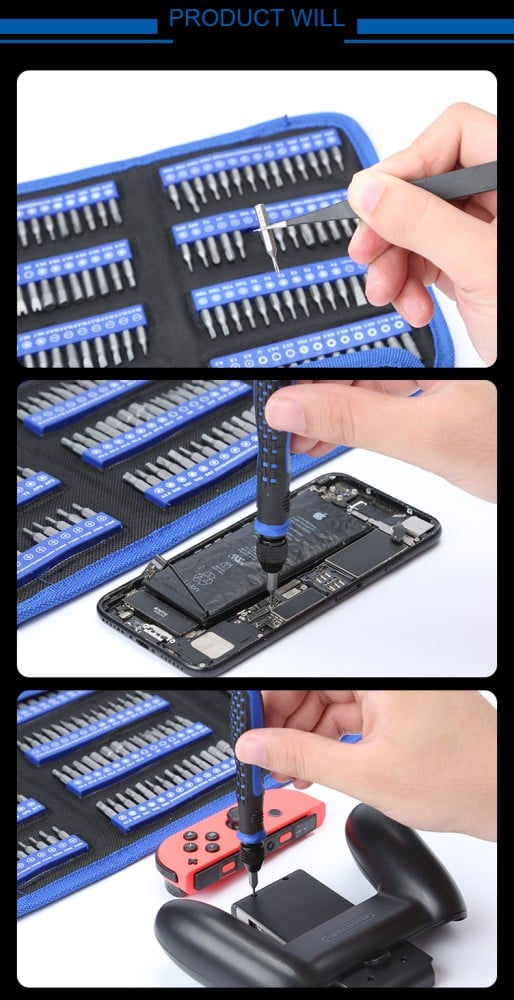 - طقم مفكات 128 في 1 في حقيبة منظمة لتخزين الملحقات المتعددة .